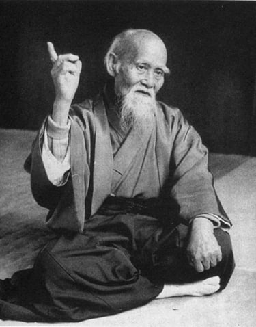 Se puede decir que el Aikido es el resultado del despertar espiritual de Morihei Ueshiba, puesto de manifiesto a través de las técnicas del Budo (arte marcial). En los movimientos se revelan los principios de la naturaleza y el universo.